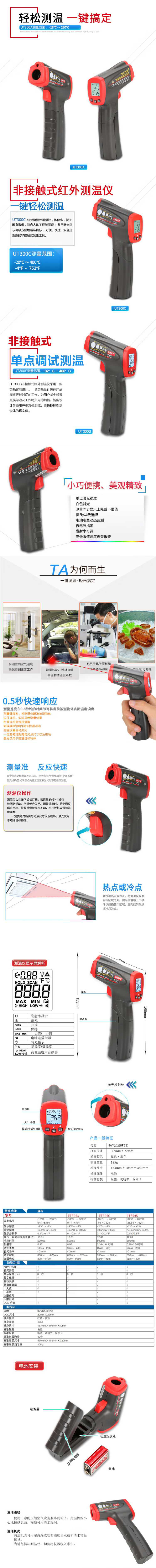 商品名称: 优利德/UNI-T -18℃至550℃/UT301C 红外测温仪