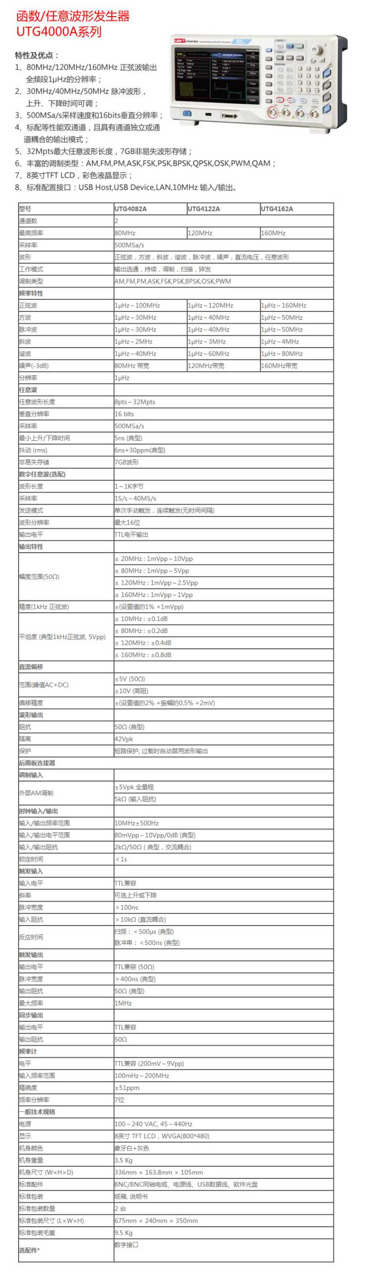 • 商品名称:优利德/UNI-T UTG4082A 函数/任意波形发生器