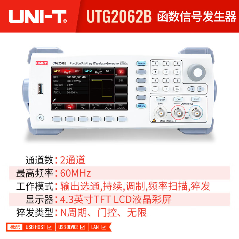 • 商品名称:优利德/UNI-T UTG2062B 函数/任意波形发生器