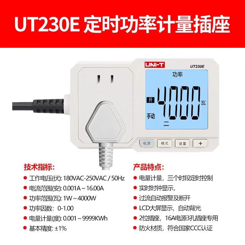 • 商品名称:优利德/UNI-T UT230E(10A/16A 4000W) 定时功率计量插座