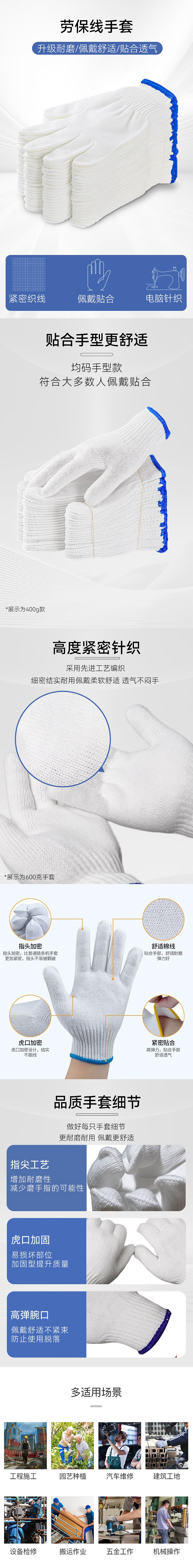 • 商品名称:沂龙 10针/400-800g/白色 线手套