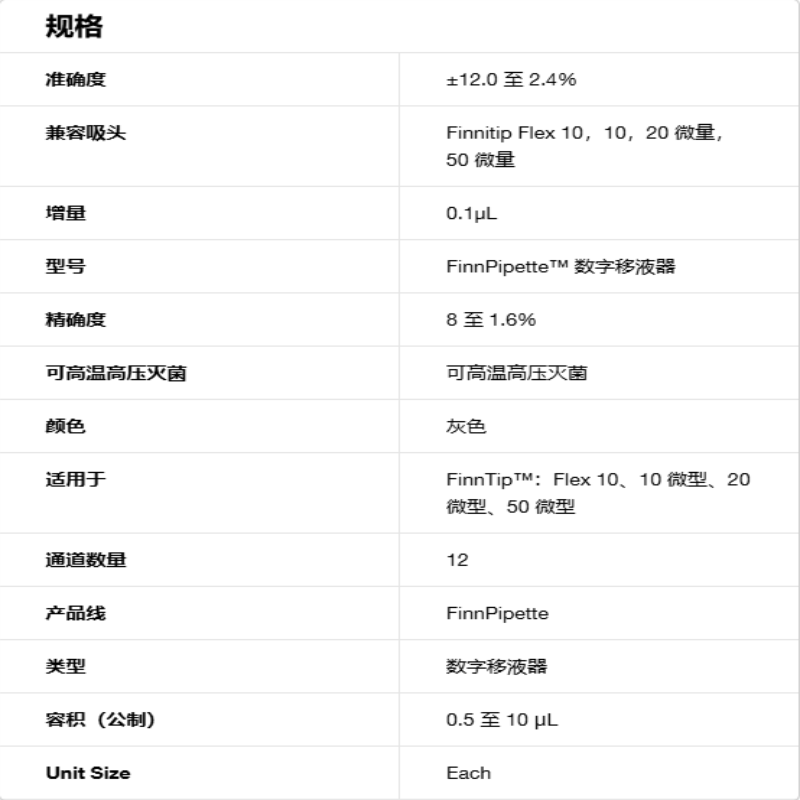 商品名称: 赛默飞 4510010 Finnpipette 数字多通道移液器 0.5-10ul