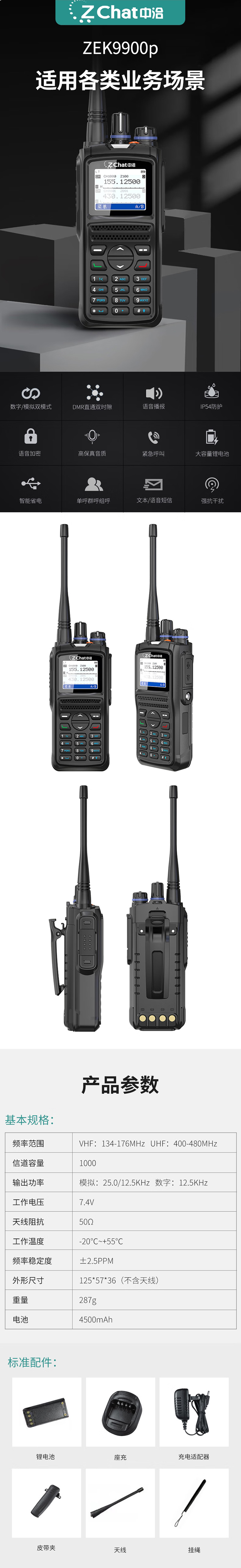商品名称: 中洽/zchat ZSK9900p数字对讲机 大功率远距离超长待机