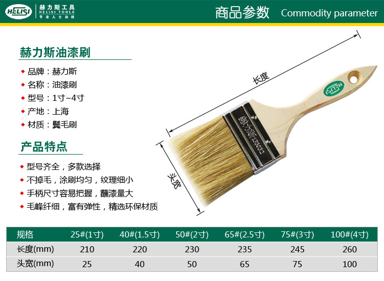 商品名称: 赫力斯 油漆刷25#(1寸) 黄色 (单位:把)
