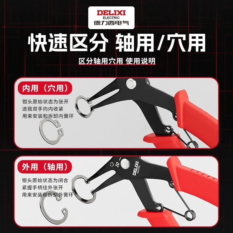 • 商品名称:德力西电气 内档弯5"/外档直5"/内档直5"/外档弯5" 卡簧钳