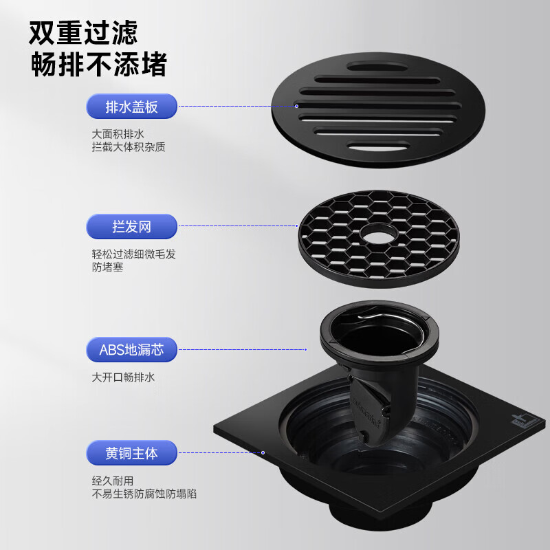 潜水艇/Submarine 100*100mm/铜/DN50/黑色 隐形地漏 100*100mm/铜/DN50/黑色