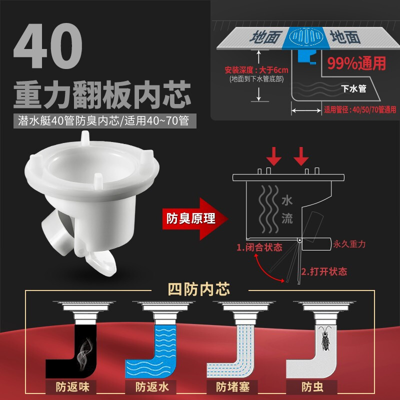 • 商品名称:潜水艇/Submarine PVC/DN40F型 地漏芯 PVC/DN40F型