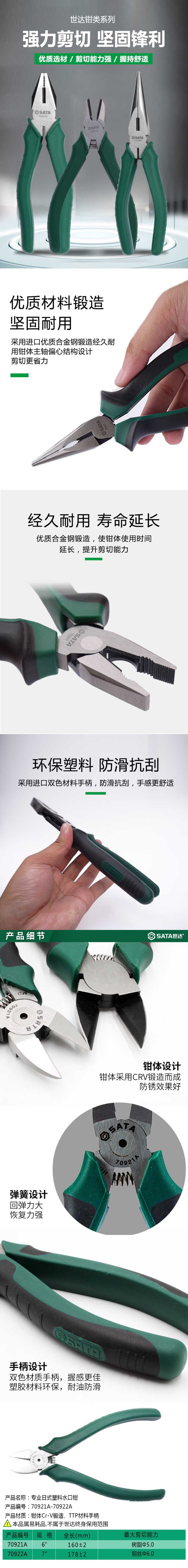 • 商品名称:世达/SATA 塑料6" 绝缘钳 水口钳