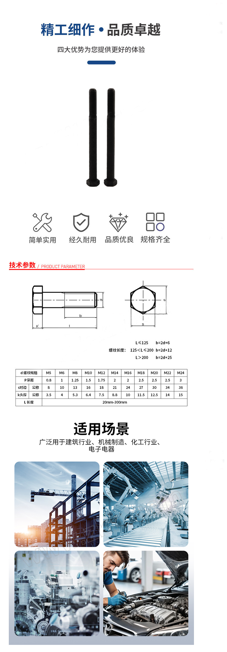 • 商品名称:天宝/Tbao M30/95mm-20码/30码/M/型号GB5782 六角头螺栓 镀锌半牙88级外六角螺栓