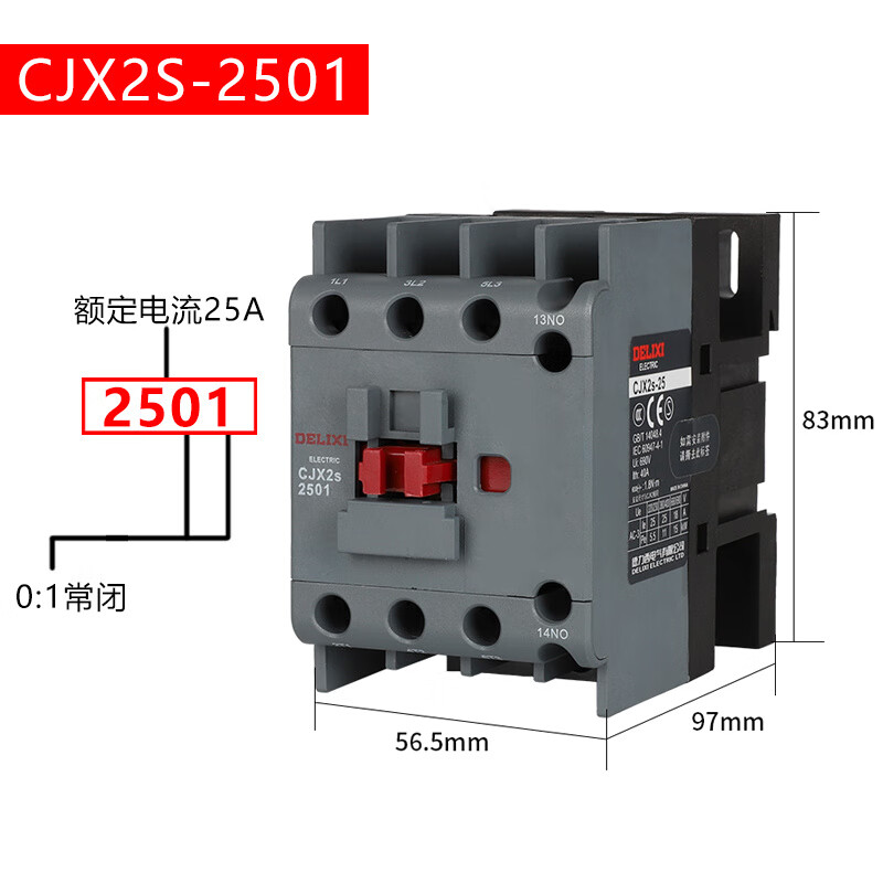 • 商品名称:德力西 CJX2s-2501 220V/230V 50/60Hz RoHS 通用型接触器