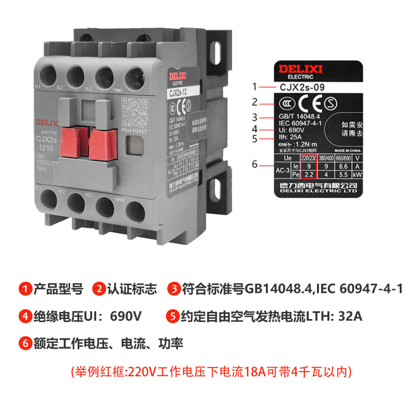 商品名称: 德力西 CJX2s-2501 220V/230V 50/60Hz RoHS 通用型接触器
