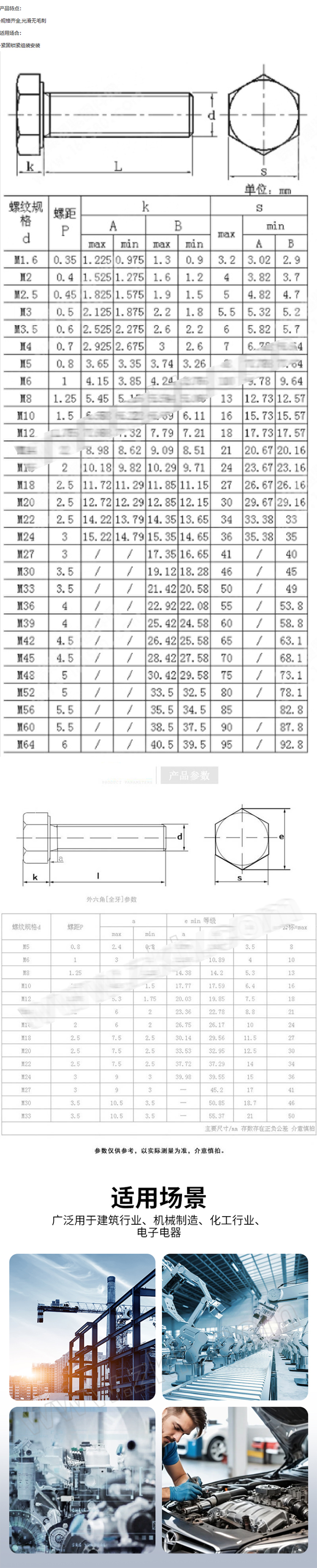 • 商品名称:天宝/Tbao M27/80mm-黑/型号GB5783 六角头螺栓 淬全牙88级外六角螺栓