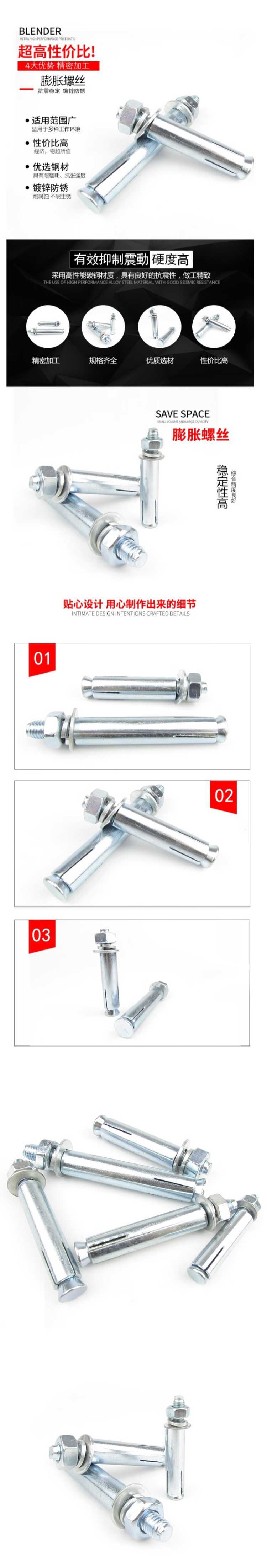 • 商品名称:天宝/Tbao 锚栓直径:16mm;锚栓长度:200mm 膨胀螺栓 镀锌膨胀螺栓
