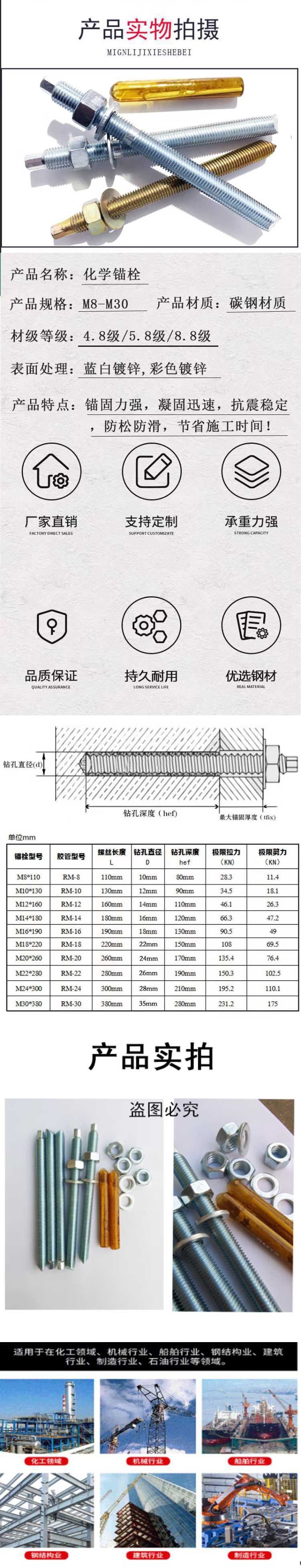 • 商品名称:天宝/Tbao 4.8级 M8*110 膨胀螺栓 化学锚栓