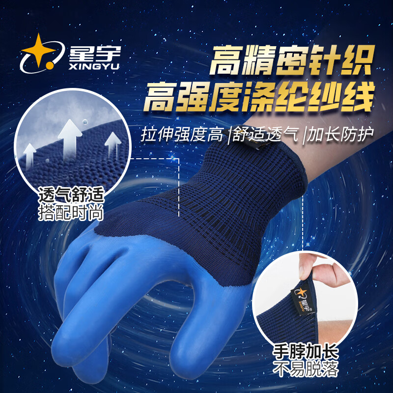 星宇 8-9码/黑蓝色 丁腈手套橡胶防滑