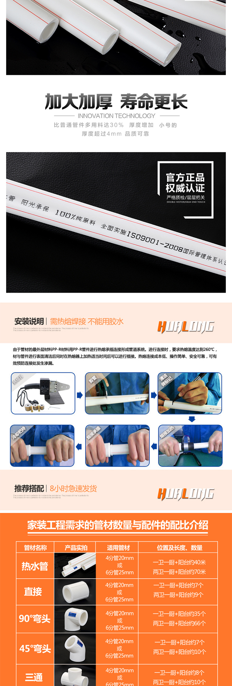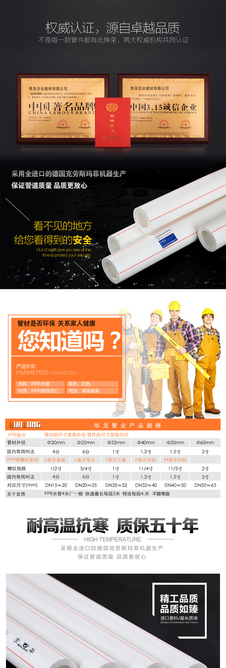 • 商品名称:华龙 4分 φ20mm 4米 PPR冷热水管(成都专供)白色(单位:根)