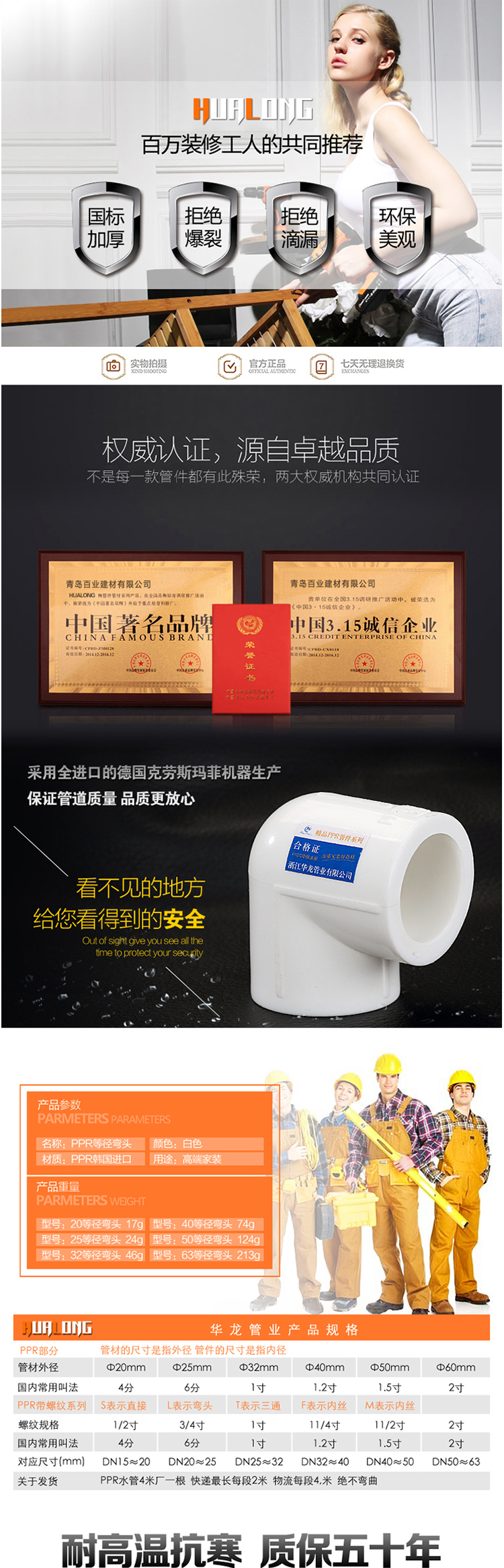 • 商品名称:华龙 4分 φ20mm PPR90度弯头(成都专供)白色(单位:个)