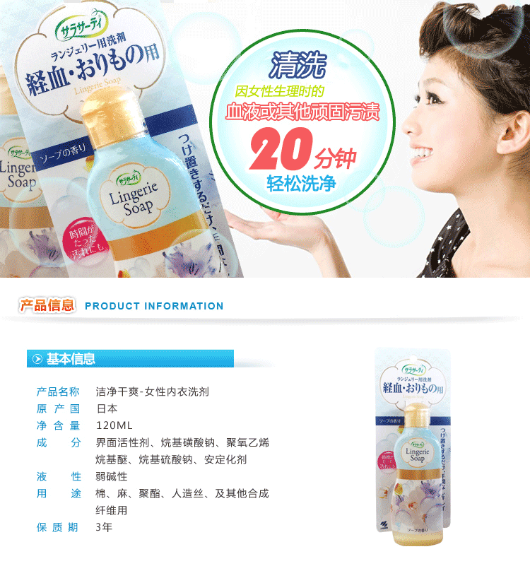 清洁洗护  > 衣物清洁  > 洗衣液/洗衣凝珠  >  小林制药/KOBAYASHI  >  小林制药/KOBAYASHI 日本原装进口 内衣内裤 去除污渍 洗衣液 120ml 120ml