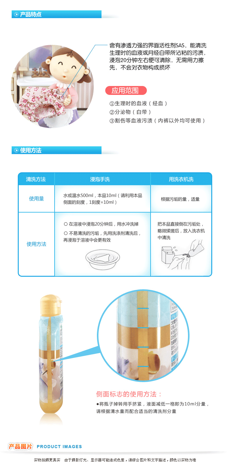 商品名称: 小林制药/KOBAYASHI 日本原装进口 内衣内裤 去除污渍 洗衣液 120ml 120ml