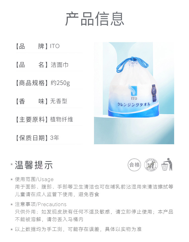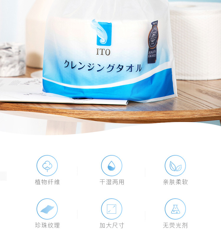 • 商品名称:ITO 洗脸巾 纯棉干湿两用一次性洁面巾 80枚/卷 单位:卷