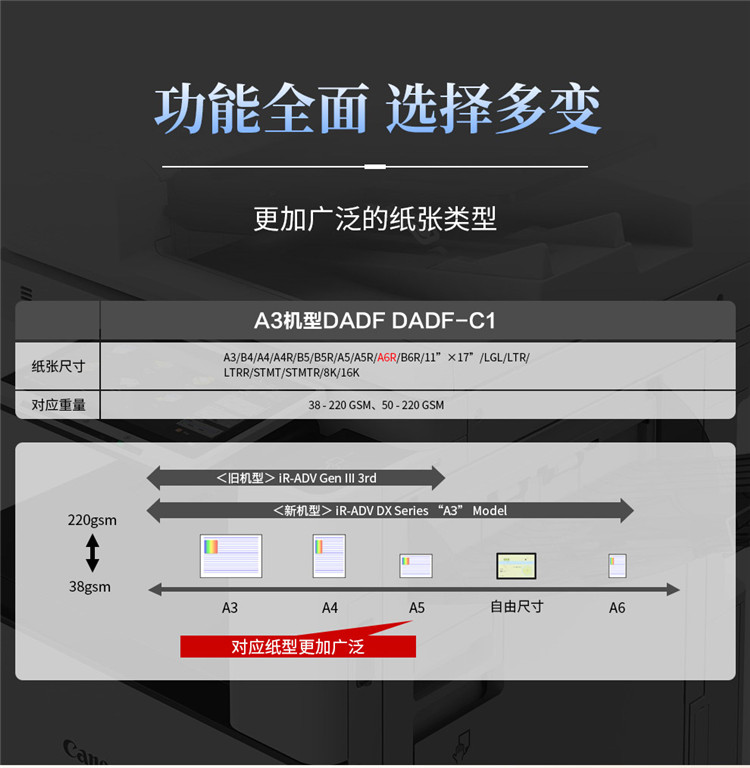 • 商品名称:佳能/Canon iR-ADV DX C5740 2纸盒/输稿器/工作台/8万印 彩色数码复合机 40页/分钟 白色 A3