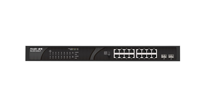 锐捷 RG-ES118GS-P 交换机(16个10/100/1000Mbps自适应电口/2个10/100/1000Mbps上联光口16个口支持PoE/PoE/供电/最大PoE功率247W/交换机容量36Gbps/包转发率26.78Mpps/非网管型交换机/机架式)(单位:台)