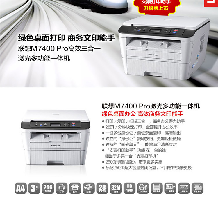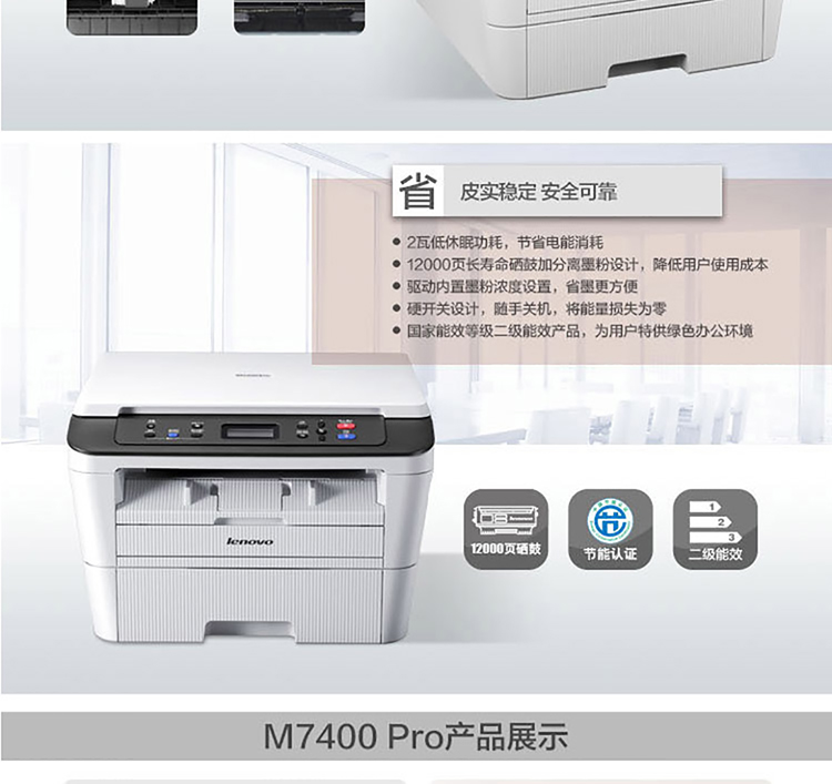 • 商品名称:联想 M7450F Pro 激光多功能一体机(可调节分辨率HQ1200 600*600dpi/票打印/海报打印/多合一打印/页眉页脚打印/打印/复印/扫描/传真) (单位:台)