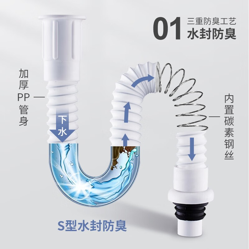 过江龙 31~95cm/DN75 菜盆下水管 31~95cm/DN75