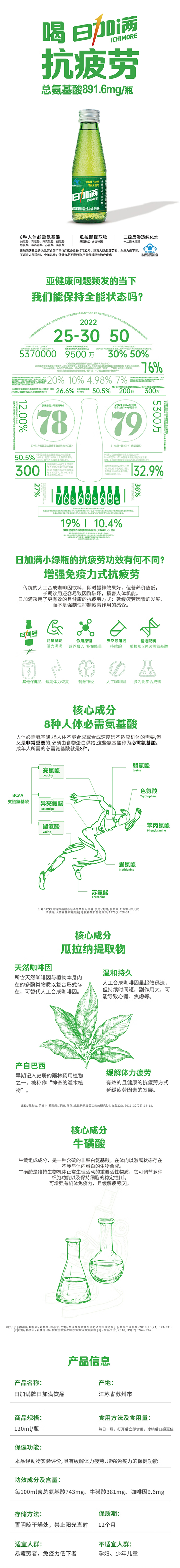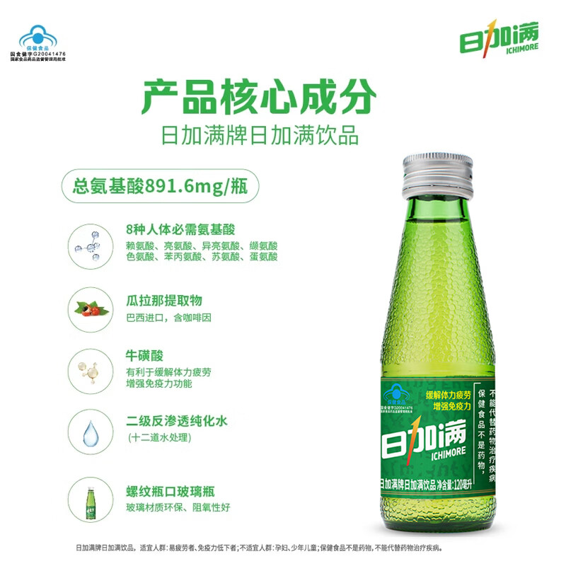 • 商品名称:日加满/ICHIMORE 小绿瓶牛磺酸饮料120ml 10瓶/箱